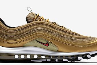 La marque à la virgule rend hommage aux pays qui ont contribué à sa popularité et présente une Nike Air Max 97 Metallic Gold Italy.