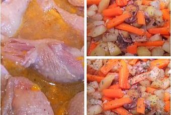 10- Ajouter les carottes coupées en bâtonnet, les pommes de terre, saler poivrer et ajouter le bouillon de volaille (environ 250ml d'eau).
