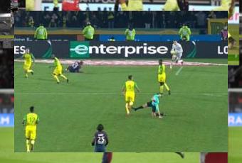 Mr Chapron fait un tacle sur un joueur Nantais après avoir été bousculé accidentellement.