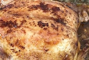 Pour vérifier la cuisson, piquer le poulet, si la couleur du jus qui s’en écoule est clair, c’est prêt.