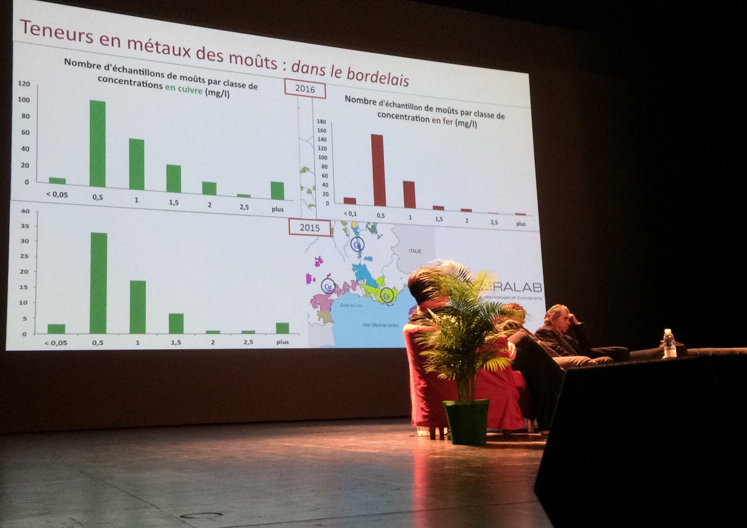 Selon Sofralab ces teneurs sont significatives au moins en Bourgogne et en Suisse, moins dans le Bordelais où les concentrations en Cuivre et en Fer des moûts seraient assez faibles.