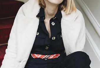 Manteau / Coat Berenice, Combinaison / Jumpsuit Victo, Foulard / Scarf Hermes, Chaussures / Shoes Sezane