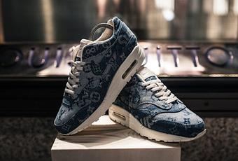 La paire a été imaginée et exécutée à partir d’une commande de la célèbre collectionneuse de Air Max 1 et Master Of Air Shoenica. Ensemble, ils se sont inspirés de la récente collaboration entre la marque de skate américaine et la maison française de maroquinerie de luxe. Ils ont ainsi créé la paire à partir d’un jean issu de cette même collaboration, jouant avec les différents imprimés du vêtement. L’upper en denim bleu frappé du sigle LV sur l’ensemble du pattern apparait aux cotés du logo Supreme présent sur les deux talons. La languette couleur crème reste quant a elle marquée de l’habituel branding Nike Air. La paire repose sur une sole de Air Max 1 traditionnelle rappelant le lining intérieur et la languette tout deux de la même couleur. Les lacets, couleur crème également, viennent renforcer ce contraste habilement travaillé.