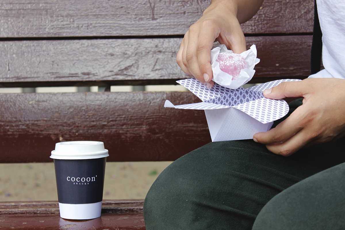 Lors d’un projet étudiants à l’école espagnole de packaging ElisavaPack de Barcelone, les étudiantes Sandra Solanas, Yolanda Sabuz Vidal et Sofia Cuba ont présenté Cocoon, un projet liant identité visuelle, graphisme et packaging pour une marque alimentaire intégrée dans l’entomophagie.