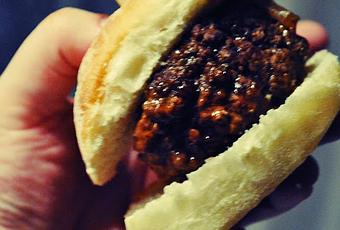 Après des minis hot dogs.... Il fallait bien réaliser des minis burgers. Rien de bien compliqué. Des mini boulettes farcies au fromage cheddar, des oignons caramélisés, des minis pains ciabatta, mais surtout une sauce à tout casser :) Steven Raichlen a toujours le don de venir chavirer nos papilles ! Et il a réussi son pari avec cette sauce délicieuse !