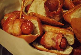 Bouchées de saucisses au bacon, sauce barbecue pomme et érable