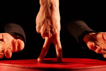 Numéro de natation synchronisée, performance de pole dance et même reprise du boléro de Ravel – dans la scénographie de Maurice Béjart – s’enchaînent à double sous nos yeux captivés. En toute transparence, les techniciens s’activent et les caméras effectuent sur scène un véritable bal millimétré, sorte de second spectacle chorégraphique simultané. Les mains elles-mêmes se meuvent avec une agilité déconcertante qui frôle la virtuosité, notamment lors du numéro de claquettes-dés-à-coudre directement hérité des plus grandes scènes de Fred Astaire et Ginger Rogers.
