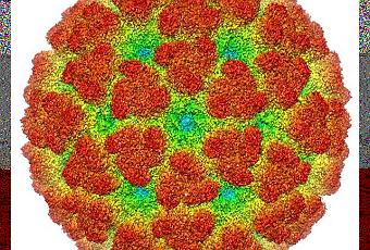 Vue en microscopie électronique de reconstitution du virus Chikungunya