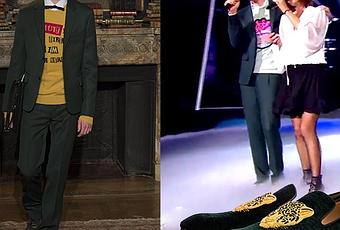 Les chaussures sont des Louboutin, comme d'habitude 👍🏻 Ce sont les mocassins Dandeleon en velours imprimé crocodile gaufré vert, brodés d'une tête de tigre, un style qui incarne l'élégance gentleman.