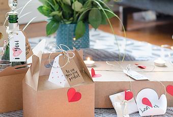 Déjà les boites se montent, s'assemblent très facilement. Ensuite il faut laisser place à son imagination. Avec le ruban collant double face c'est très facile de coller les coeurs, la dentelle pour décorer les boites. La ficelle en chanvre m'a permis de tout nouer, accrocher joliment. Pour les bocaux en verres, j'ai recouvert le couvercle (pas très joli) d'une serviette en papier. Les étiquettes m'ont servi pour décorer mais aussi pour inscrire le contenu des boites comme pour faire un menu.