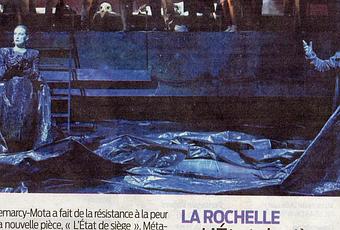 Du 31 janvier au 2 février 2018 à la Coursive de La Rochelle, " Etat de siège ", pièce d'Albert Camus. Si, comme l'affirme justement Artaud, " le théâtre est fait pour vider collectivement des abcès ", c'est bien à vider les abcès des angoisses du monde moderne que le metteur en scène Emmanuel Demarcy-Mota a convié le spectateur. Résonance étrange de ce texte écrit après la seconde guerre mondiale et qui pousse à une réflexion sur toutes les formes de rejets et d'extrémisme.