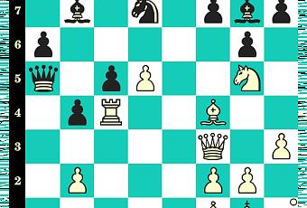 La solution : 23.Fc7! Un coup fourbe qui vise à libérer la colonne f 23...Dxc7 24.Dxf7+ Rh8 25.Th4 et les Noirs abandonnèrent [25.Th4 h6 26.Txh6+ Fxh6 27.Dh7#] 1-0