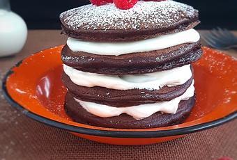 - Déposer le 1 pancake au chocolat dans une assiette de service.