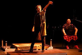 Sur ce plateau qui n'en est plus vraiment un - durant de longs moments j'ai cru regarder une sorte de grande caverne ou une arrière cour, la nuit, derrière une auberge andalouse - huit danseurs et musiciens, souvent à contre emploi, se livrent à une débauche d'excentricités, explosent les codes, propagent le chaos ! Caracafé, guitariste baroque, Niño de Elche, chanteur déjanté, El Junco, Uchi, petite dame gitane aux clarks rouges, Alia Selami, voix céleste, Eloisa Cantón, tendre violoniste, Alejandro Rojas-Marcos, pianiste et improvisateur de talent et Ramón Martinez, danseur Malaguène, compagnons de fiesta, complices consentants à cette destruction programmée. Lui, arrivé au son du sifflet, commence par un flamenco couché sur le dos. Des pieds, des fesses, des mains, il danse. Ses zapateados sont assurés, le rythme soutenu, il danse et joue avec tout son corps. Les autres, parfois ridicules, parfois incongrus, assurent leur partie, chacune ou chacune à son tour, lui, chef d'orchestre génial, organise le désordre. Il n'y a qu'à la fin que, revenant à son passé de soliste, de performeur, de bête à concours, il reprend la main (le pied !) et nous offre une déferlante de flamenco revisité, comme titillé par un courant " galvanique ".