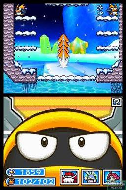 Voici deux images supplémentaires de Legend of Stafy 5 sur DS. Notre petite étoile jaune aura la possibilité de se transformer en dragon et autres créatures. Un second joueur pourra jouer en coopération avec Stapy (la soeur de Stafy) lors des affrontements.