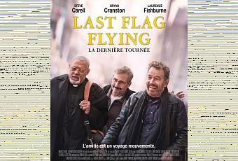 Last Flag Flying est l'adaptation du roman éponyme de Darryl Ponicsan (ce dernier en est également le co-scénariste). Ce texte en question est en fait la suite d'un autre roman : The Last Detail, adapté au cinéma en 1973 ( La Dernière Corvée en VF - ce qui explique au passage le sous-titre " écho " présent sur l'affiche française La Dernière Tournée) par Hal Ashby avec dans les rôles principaux Jack Nicholson, Otis Young et Randy Quaid. Cela dit, Richard Linklater, réalisateur de films cultes hilarants ( Rock Academy), d'une trilogie romantique tendre (les Before...), parfois " expérimentaux " (), voire même étranges ( A Scanner Darkly), n'a pas souhaité que son Last Flag Flying soit une suite du long-métrage d'Ashby. Avec son affiche française ringarde et datée (je n'arrive pas du tout à savoir si ce choix est volontaire ou non), le dernier film de Linklater est sorti discrètement chez nous malgré un casting masculin très attirant : malgré la réelle sympathie que j'ai en général pour le travail de Linklater (qui a le mérite d'avoir une filmographie personnelle et variée), je me suis intéressée à Last Flag Flying principalement pour ton trio prestigieux. Je ne dirais pas que le film est principalement sauvé par son casting et ses personnages (car je trouve toujours cet argument limité) mais il faut avouer qu'il s'agit au moins d'un point fort. Le trio formé par Steve Carell (décidément de plus en plus à l'aise dans des rôles dramatiques depuis Foxcatcher), Bryan Cranston et Laurence Fishburne fonctionne formidablement bien : il y a une belle complicité entre ces trois grands acteurs. Même s'ils tombent parfois dans un certain cabotinage (cela annonce déjà les réelles lourdeurs présentes tout le long du long-métrage), leurs interprétations sont remarquables. Leurs personnages sont tous très attachants, ayant chacun leurs histoires (la perte d'un fils, l'alcoolisme, la rédemption par la religion), leurs blessures et surtout leur propre vision du monde (ils sont, respectivement, médecin, barman et pasteur). Le propos en lui-même est plutôt " intéressant ", notamment en établissant ce parallèle entre la guerre du Vietnam au cours des années 1970 et la guerre d'Irak dans les années 2000. Linklater dénonce plutôt bien l'absurdité de la guerre et surtout l'hypocrisie même de l'armée, qui parle d'héroïsme là où il n'y en a pas. Bon, il n'y a aucun génie là-dedans, ni dans sa démonstration ni dans sa mise en scène (mais j'imagine qu'on ne demande pas autant au réalisateur même si on l'a connu plus inspiré), mais je dois admettre que cela fonctionne un minimum.