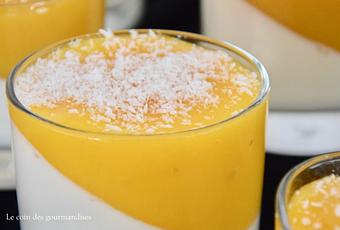 Voici donc des petites verrines avec une panna cotta au lait de coco et une purée de mangue.