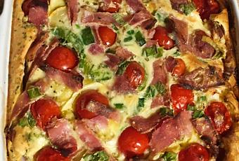 Lorsque j'ai découvert cette recette sur le blog de Patricia " Je cuisine donc je suis " , j'ai tout de suite eu le coup de coeur et décidé de tester. J'ai juste remplacé le jambon cru par du jambon blanc, et la ciboulette par des fanes d'oignon nouveau qui me restaient au congélateur. C'était un régal !