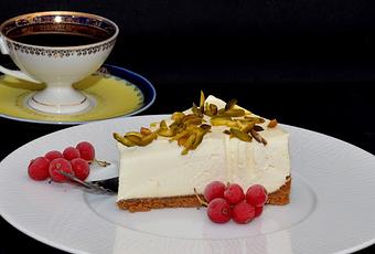 Pour fuir la grisaille et l'humidité de Paris, j'ai pris le train direction Marseille. Il y fait beau et la température est plus clémente.Aujourd'hui, je vous propose un cheesecake, sans cuisson et sans gélatine. La garniture tient grâce à la présence du chocolat blanc qui apporte une discrète saveur de vanille et donne à la garniture une fermeté parfaite après une nuit au frais.La blancheur du gâteau est atténuée par le vert des pistaches coupées en bâtonnets et dispersées sur toute la surface. J'aurai dû en mettre plus.J'ai extrait cette recette du dernier livre de Nigella Lawson "At my table". Je l'avoue, j'ai un grand faible pour les recettes de cette femme et jusqu'à présent, elle ne m'a jamais déçue. Nigella propose de servir les tranches de gâteau avec des graines de grenade. Je n'en avais pas.J'ai mis des groseilles pour le contraste des couleurs.Pour la réalisation de ce gâteau, j'ai garni le fond de mon moule amovible d'un papier sulfurisé de la même dimension et j'ai bien tassé ma croûte.Cela m'a permis de démouler facilement mon gâteau et de le glisser sans problème sur le plat de service.Il n'y a pas de sucre dans les ingrédients. C'est le chocolat blanc qui sucre la garniture.Ce cheesecake est délicieux.
