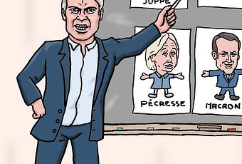 Laurent Wauquiez, Alain Juppé, Nicolas Sarkozy, Valérie Pécresse, Emmanuel Macron On peut dire que le cours du leader des LR n'est pas passé inaperçu. C'était à l'école de commerce de Lyon ( EM Business School) les 16 et 17 février derniers. Le vocabulaire employé était à la portée de tout le monde : "cramé", truc", guignols", conneries". C'était donc un cours vivant que les étudiants ont sans doute bien apprécié. Ce qui n'a évidemment pas été le cas des personnalités que Laurent Wauquiez s'est fait un plaisir de salir (voir dessin) !!!
