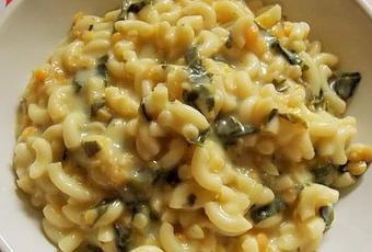 Voilà une belle façon d'accommoder un reste de pâtes, pour en faire un plat complet et équilibré ! La sauce est très onctueuse et pleine de saveurs.
