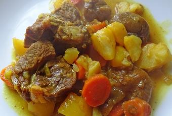 Dans un récipient à bec verseur, verser l'eau et le vin blanc, le miel, les épices, sel, poivre, bien mélanger le tout et verser dans la cocotte. Ajouter les morceaux de pommes de terres et de carottes ainsi que les figues. Mélanger, mettre le couvercle et laisser cuire à feu doux pendant 1h en remuant de temps en temps.