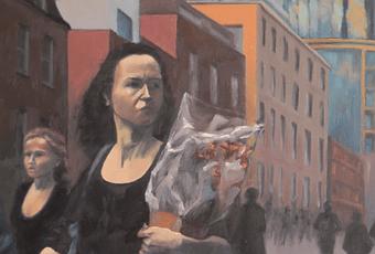 Certaines peintures dressent des portraits d'habitants dans des contextes différents : dans les rues, au domicile, au travail ou durant les loisirs ; mais ces portraits suscitent parfois une impression de mélancolie. L'homme et les villes qu'il a bâties forment un couple aux contours vides de sens, un peu comme une fête sans musique. Nous demeurons égarés par la croissance démesurée de nos grandes villes, en perpétuelle évolution, et par la difficulté que nous avons à y trouver notre place, à y vivre pour y accomplir notre existence.