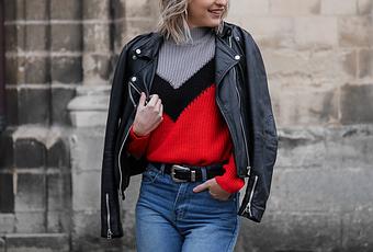 Pour ce look, j'ai voulu mettre en avant le côté vintage du chevron en le portant avec un mom jean dont je suis complètement fan aussi. Celui-ci aussi a été trouvé par ma petite sœur et elle m'a enfin trouvé le pantalon bien taille haute mais assez serré quand même! Je l'aime tellement que je ne veux que ça dans mon armoire maintenant! haha Pour le pull, je l'adore tout autant, notamment avec son col cheminé qui m'a fait craquer tout l'hiver!
