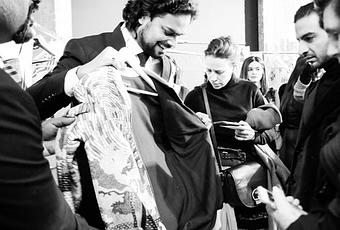 À la veille de notre rencontre, Rahul Mishra était à Londres, interviewé par Suzy Menkes-soit l'icône de la critique mode. Depuis longtemps elle défend le créateur indien, valorisant la précision de ses collections qui mériteraient bien l'appellation de Haute Couture. Passer après Suzy : tout un défit. Comme elle, la description de la sophistication des vêtements pourrait occuper des lignes entières de cet article. Plutôt qu'un fétichisme vestimentaire c'est le combat du créateurs, de l'homme, son projet de mode sociale qui a éveillé toute ma fascination. Même si la délicatesse de ses broderies ne peut laisser indifférent.