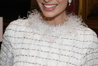 L'actrice, productrice et réalisatrice Australienne Margot Robbie, portait des boucles d'oreilles " Plume " en or blanc 18K et diamants CHANEL Joaillerie.