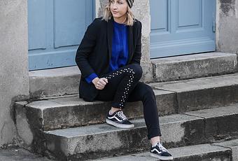 Pour le reste du look, je porte mon nouveau pantalon clouté trouvé en soldes chez H&M. Pour tout vous dire, je suis un peu mitigé quant à sa coupe. J'adore son côté taille haute, dont je ne peux pas me passer dernièrement. En revanche, sa coupe au niveau des chevilles est un peu trop large à mon goût. Ni slim ni coupe droite, il donne presque l'impression d'être mal taillé. Du coup, j'ai rusé en repliant le pantalon vers l'intérieur pour donner l'impression que c'est plus ajusté.