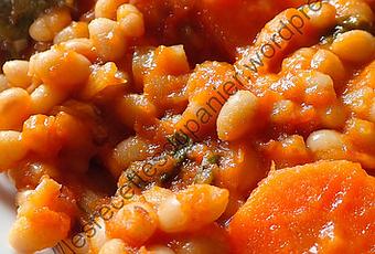 Fry the onion and garlic with the olive oil in a large pot. Add the carrots and potatoes cut into pieces. Let it soften a little. Add the tomato coulis and the chard cut into sections.