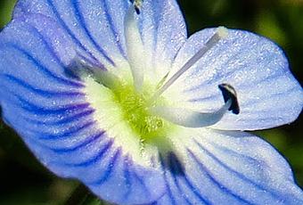 Veronica persica (Véronique de Perse) : tige velue plus ou moins couchée ; feuilles ovales fortement dentées, opposées à la base puis alternes ; grandes fleurs axillaires portées par un pédoncule dépassant les feuilles, 2 étamines, corolle bleue à 4 lobes étalés, de taille inégale, calice à 4 sépales.