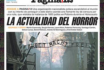 Depuis samedi, Página/12 est au centre d'une polémique très sérieuse et mondiale puisqu'un groupe d'extrême-droite nationaliste polonaise veut lui faire un procès au titre de la nouvelle loi votée récemment dans ce pays de l'ancien Pacte de Varsovie pour interdire de parler de camp de concentration polonais (ce que d'ailleurs peu de gens faisaient avant cette loi encore plus stupide que liberticide, c'est peu dire !).