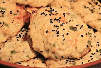 Ingrédients 1 chou fleur 2 oeufs 50gr de parmesan en copeau 50gr de mozzarella 2 c. à s. rases de semoule extra fine ciboulette 1 c. à c. de cumin en poudre 1 pincée de piment sel et poivre du moulin sésame noir
