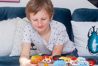 On se retrouve aujourd'hui avec de drôle de petits monstres qui ont débarqué à la maison récemment.Il y a quelques jours nous avons eu la chance de recevoir un colis de la part de Giochi Preziosi rempli de Hero Eggs, des personnages horrifiques à la tête en forme d’œufs à collectionner !Mathis adore toujours autant ce genre de jouet et il était très content de découvrir cette nouvelle gamme.Représentant les monstres les plus mythiques de l'univers horreur et fantastique - on retrouve par exemple Frankenstein, un Loup-Garou ou encore un Yeti - ces personnages ont la particularité de pouvoir se contenir dans leurs têtes ovales.En effet la tête s'ouvre pour pouvoir ranger le corps ainsi que les différents autocollants repositionnables qui servent à customiser la bouille de ces monstres. Il y a aussi un accessoire "coiffe" propre à chacune des figurines.