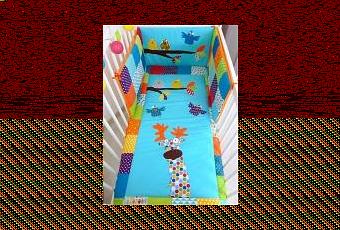 Elle m'a envoyé quelques photos des stickers prévus sur les murs, et quand j'ai découvert ces oiseaux rigolos, j'ai tout de suite craqué et imaginé le décor du linge de lit ! Mais c'est en voyant le tableau caribou que j'ai compris où je devais aller !!