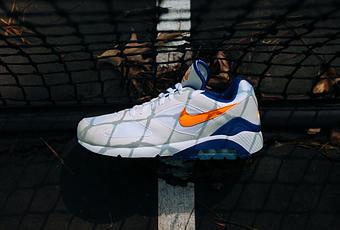 Originellement sortie en 1991, la Air Max 180 se caractérisait par son unité Air 50% plus grande que sa prédécesseure, la Air Max 90. Cette unité plus imposante se traduisait par une ouverture transparente s’installant confortablement sous la outsole de la chaussure, une véritable première pour l’époque. La paire est également restée célèbre pour son apparition dans une pub dirigée par David Cronenberg qui serait complètement injustifiable aujourd’hui. Après le retour de la Ultramarine plus tôt dans l’année, c’est donc le second coloris OG qui s’apprête à faire son retour. La paire présente une empeigne blanche habillée d’un Swoosh orangé ainsi que de quelques touches de bleu nottament sur son lining et sa midsole. Quelques panels en nylon sont également entourés par une toe box et un talon en suède beige.