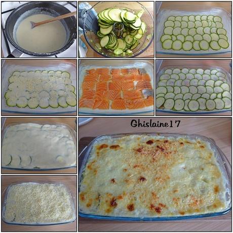 Observation : Ce plat façon "lasagnes" mais avec les courgettes qui servent de "pâtes", le saumon, la béchamel et le gruyère râpé qui assemble le tout ... c'est tout simplement un régal !!!