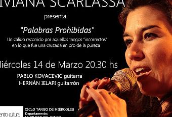 La chanteuse Viviana Scarlassa se produira ce mercredi 14 mars 2018 à 20h30 dans le cadre du Tango de Miércoles, la série de soirées musicales du Centro Cultural de la Cooperación Floreal Gorini, avenida Corrientes 1543.