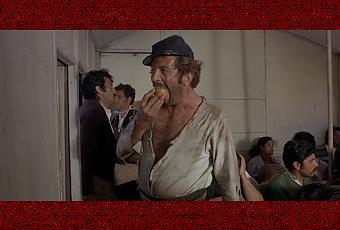 Quelques moments comiques dans le train semblent issues d’une veine chaplinesque assumée (Enrico Maria Salerno qui vole de la nourriture dans le train, la séquence de destruction du coffre au canon), certaines séquences distillent une étrangeté et un cynisme assez savoureux (le jeu macabre avec le revolver autour d'une table, les deux chefs de bande qui s'entretuent et qui réalisent qu'ils se sont fait avoir), d’autres lieux communs du western zapata, enfin - l’automobile, les soldats qui se font décimer - feront plaisir aux aficionados du genre dont je fais partie.Ce qui fonctionne moins bien, c’est l’humour poussif et prévisible de situations comiques dont on devine la chute des kilomètres à l’avance. Qui n’a pas vu venir que nos deux lascars allaient se faire totalement dépouiller par le vendeur de billets avant de monter dans le train ? Qui n’a pas étouffé un bâillement devant le manège des peones qui baladent nos deux héros d’indic en indic ? Qui n'a pas ressenti une impression de déjà vu à chaque fois que Mark Damon apparaît de nulle part pour retourner la situation? Et qui n’avait pas deviné que la femme (Dominique Boschero) était plus intéressée par l’or que par n’importe quel mâle qui lui tourne autour ? ET surtout, au-delà de ça, le duo principal censé porter le film est légèrement boiteux. Si Enrico Maria Salerno fait le job, sans toutefois provoquer de sympathie débordante, on n’en dira pas autant d’Anthony Steffen, mauvais de bout en bout. Habituellement inexpressif dans le rôle de pistolero ténébreux, il est ici contraint de forcer son talent, de sortir de ses gonds et de tenter de faire rire. Entendons-nous bien, j’aime cet acteur, mais je défie quiconque de rire quand il fait semblant de se défoncer les papilles avec un piment local. On peut au moins lui reconnaître d’aller au bout du bout du ridicule et de l’autodérision, allant jusqu’à se déguiser avec des vêtements de péon deux fois trop petits pour lui. Mais ça ne suffit pas pour emporter l'adhésion, et malheureusement, j’ai peur que ce soit cette image, et cette image seule, qui me reste en mémoire quand j’aurai totalement oublié le film dans six mois…