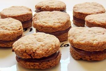 Voilà des Biscuits gourmands à IG bas, qui ne devraient pas faire culpabiliser ! Ceux qui sont habitués aux biscuits industriels, devraient les trouver pas très sucrés... Mais, moi, ils me conviennent parfaitement : le chocolat de la ganache est suffisamment fort pour rendre mes biscuits fourrés très savoureux.