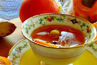 On vide tout ça dans la théière avec du thé et des rondelles d'oranges