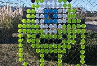 Pour la réalisation de ces personnages pixelisés ils utilisent des verres en plastique de toutes les couleurs ainsi qu'un support de grillage traditionnel.