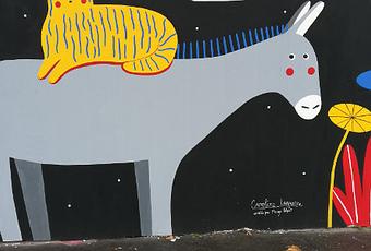 Entre le viaduc des arts et l'opéra "populaire" de Bastille, une fresque de Caroline Laguerre qui donne un peu de chaleur et de couleurs...