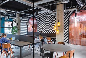 La décoration foisonne de détails, l’ambiance est jeune et ultra dynamique. Pour la décoration, on trouve du mobilier vintage des années soixante-dix mêlé à une esthétique industrielle. Chaque recoin, détail décoratif et élément visuel vise à se combiner parfaitement avec le style de vie des élèves, s’invitant et les accompagnant dans leurs activités quotidiennes pour fournir une sorte d’émulation créative.
