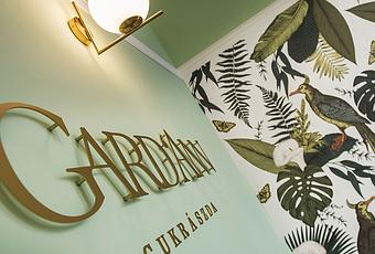 Le nom Gard’Ann vient du mix entre les mots « Garden » et le nom du propriétaire Anne Marie. Le mot à consonance française est une belle référence à la célèbre confiserie française. Le logo, quant à lui, possède un fort geste typographique. Les illustrations apparaissant sur le mur principales se retrouvent à travers toute l’identité visuelle: boîtes, cartes, sacs en papier renforçant la relation avec le mot « Jardin ». L’intérieur très lumineux, vert, aux palmiers et pastels rend les clients plus détendus.