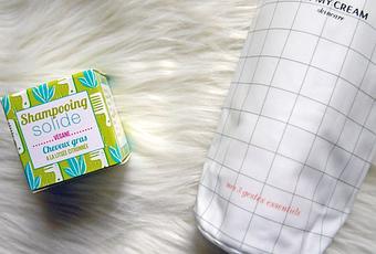 - le shampooing solide pour cheveux gras Lamazuna : quand je pars, l’objectif est de toujours réduire la trousse beauté au maximum, et cette fois, j’ai eu l’idée de prendre un shampooing solide. Petit, pratique, bio, crueltyfree, fabriqué en France je pense que pour les cheveux je ne pouvais pas trouver mieux. Il est formulé à base de rhassoul, d’huile de coco et d’huile essentielle de litsée citronnée pour assainir le cuir chevelu et faire briller les cheveux tout en douceur. Au début, c’est un peu déconcertant de passer un savon sur les cheveux mais on prend vite le coup. Et surtout le résultat est là (même si c’est bio, ça lave très bien !) : les cheveux sont doux, brillants soyeux, et regraissent moins vite. Pour l’instant, et surtout en attendant que je finisse mes tonnes de shampooing d’avance, il est rangé en attendant la prochaine escapade, mais une chose est sûre, une fois fini, ce petit cannelé sera vite remplacé par son jumeau !