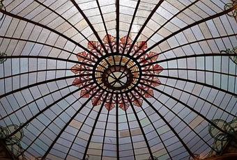Il est surmonté par une superbe coupole en vitraux qui rend le cœur de ce bâtiment spectaculaire.