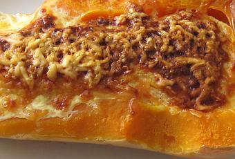 disposer les butternuts dans un plat à gratin et les remplir avec la préparation